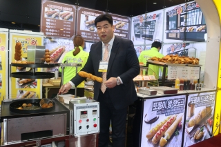 “전자동 튀김기에 반죽만 넣으면 알아서 튀겨 최대 80개까지 핫도그를 만듭니다. 예전에는 사람이 일일이 해야 하니까 튀김기 옆에 계속 불어 있어야 했는데, 이제는 이 기계 하나로 수고를 많이 덜게 되면서 인건비도 절감되고 효용성도 증가했습니다.” 또봉이왕핫도그 최종성 대표의 말이다.