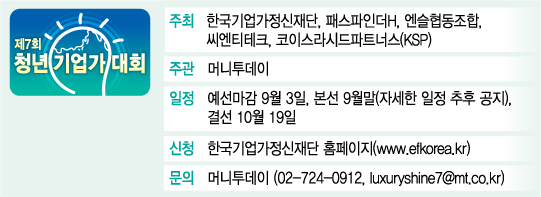 풍성한 지원과 혜택이 주어지는 제7회 청년기업가대회에 전도유망한 청년기업가들의 적극적인 참여 바랍니다.
