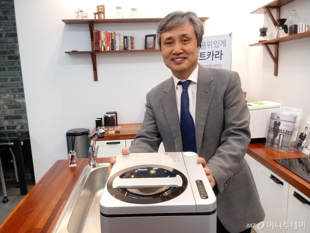 국내 음식물처리기 1위 기업 스마트카라의 배성우 대표는 지난달 29일 인천 연수구에 소재한 스마트카라 환경연구소에서 머니투데이와 만나 “공기청정기처럼 음식물처리기도 필수가전이 될 것”이라며 이같이 말했다. 그는 “대유위니아가 ‘딤채’로 김치냉장고시장을 개척한 것처럼 스마트카라가 음식물처리기 시장을 키우고 싶다”며 “대기업이 뛰어든다면 소비자가 음식물처리기의 가치를 인식하는 시간을 단축할 것”이라고 강조했다.