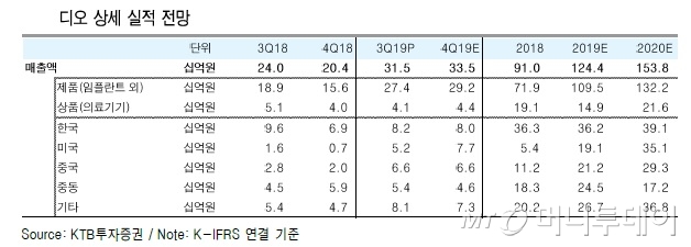 4분기에도 분기사상 최대 실적 경신을 이어갈 전망이다. KTB투자증권은 디오가 4분기에 매출액 335억원으로 전년동기보다 64.2%, 3분기보다는 6.5% 증가할 것으로 추정했다.