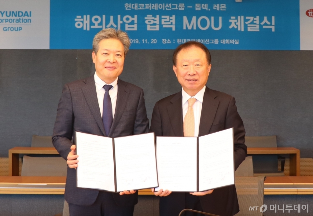 톱텍(4,410원 ▲125 +2.92%)과 자회사 레몬이 20일 현대코퍼레이션그룹 대회의실에서 현대코퍼레이션 그룹과 ‘에어퀸’ 제품의 해외시장 판매 확대를 위한 업무협약(MOU)을 체결했다고 밝혔다.