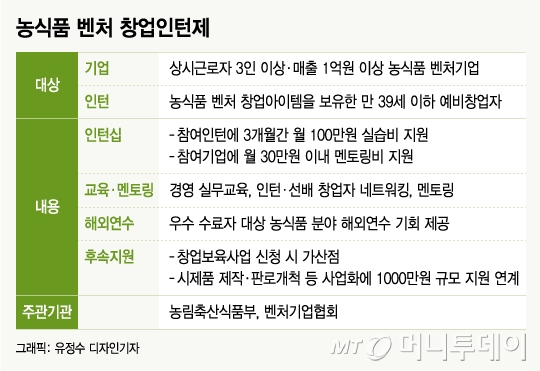 농식품부·벤처협회 '농식품 창업인턴'으로 예비창업자 지원…인턴 채용 기업에도 멘토링비 지원