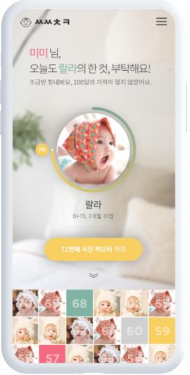 제제미미가 운영하는 '쑥쑥찰칵'은 매일 아이의 사진을 찍어 성장앨범을 만들어주는 서비스다. 아이의 성장 과정을 사진으로 기록·공유할 수 있다. 매일 아이 사진을 찍으면 성장 시기에 따라 사진이 자동으로 정리된다. 또 아기 기념일에 맞춰 성장영상도 자동 제작된다.