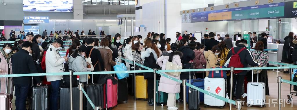![[인천공항=뉴시스]박미소 기자 = 설 명절 연휴를 앞두고 중국발 신종 코로나바이러스로 인한 '우한 폐렴'전염을 우려해23일 오후 인천국제공항 제1여객터미널 출국장에서 해외 여행객들이 마스크를 쓴 채 탑승수속을 하고 있다. 2020.01.23. photo@newsis.com](https://thumb.mt.co.kr/cdn-cgi/image/f=avif/21/2020/01/2020012415190767452_5.jpg)