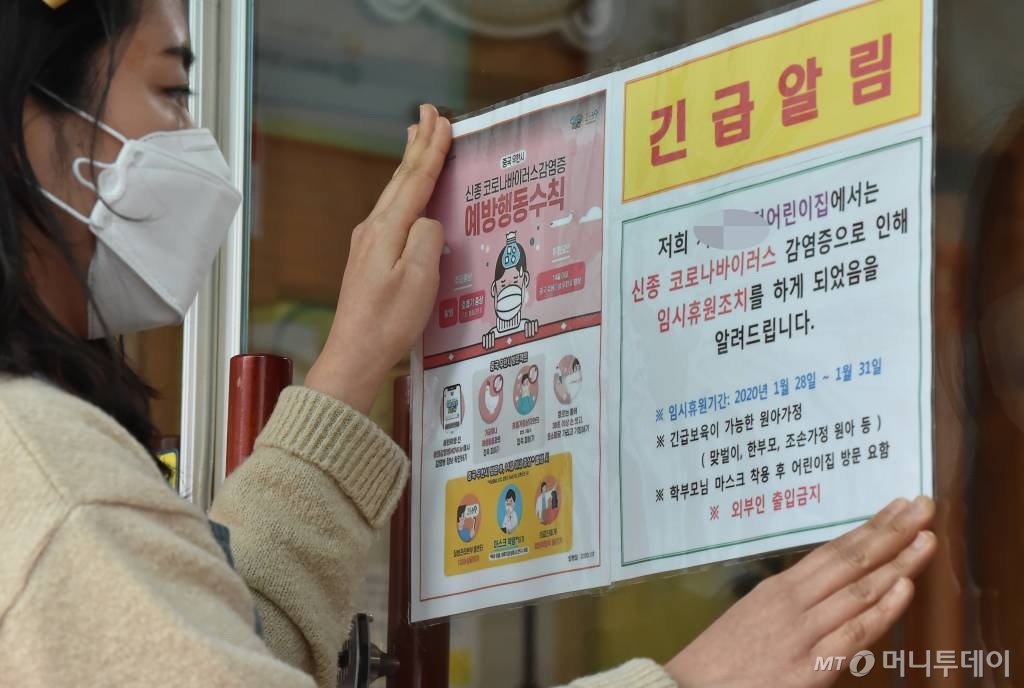 ![[평택=뉴시스] 김종택 기자 = '우한폐렴'(신종 코로나바이러스 감염증) 네번째 확진자가 평택 지역에서 발생해 어린이집과 유치원이 임시 휴원에 들어간 가운데 28일 오후 경기 평택시 한 어린이집이에서 선생님이 휴원을 알리는 안내문을 붙이고 있다. 2020.01.28. semail3778@naver.com](https://thumb.mt.co.kr/cdn-cgi/image/f=avif/21/2020/01/2020012816431960751_1.jpg)