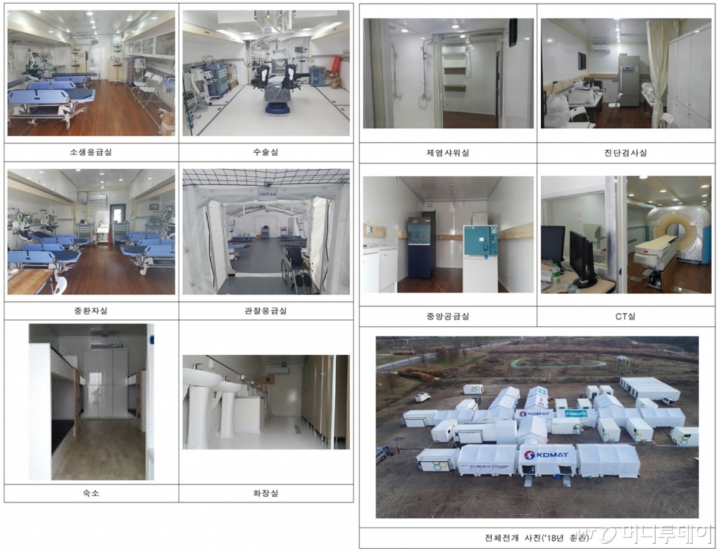 이동형 병원은 응급실과 중환자실, 수술실, CT실, 제염실 등이 모듈형태로 되어있다. 외과수술, 중환자 관리가 가능한 50병상 규모이며, 긴급하게 확장할 경우 최대 100병상까지 구축할 수 있다.