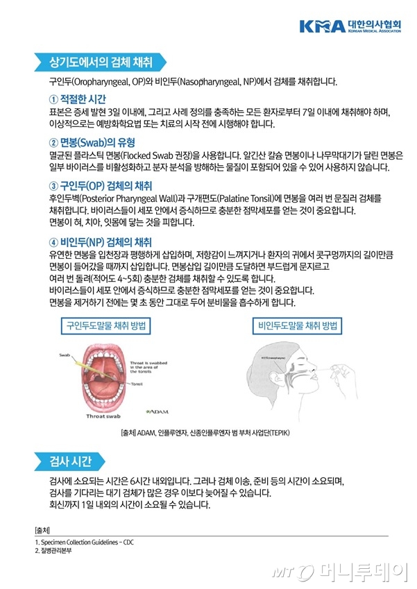 의협은 "정확한 검사가 이뤄지지 않을 경우 위음성 등 문제가 발생할 수 있는 만큼 충분한 양의 검체를 채취하는 등 올바른 방법으로 검사하는 게 중요하다"고 강조했다.