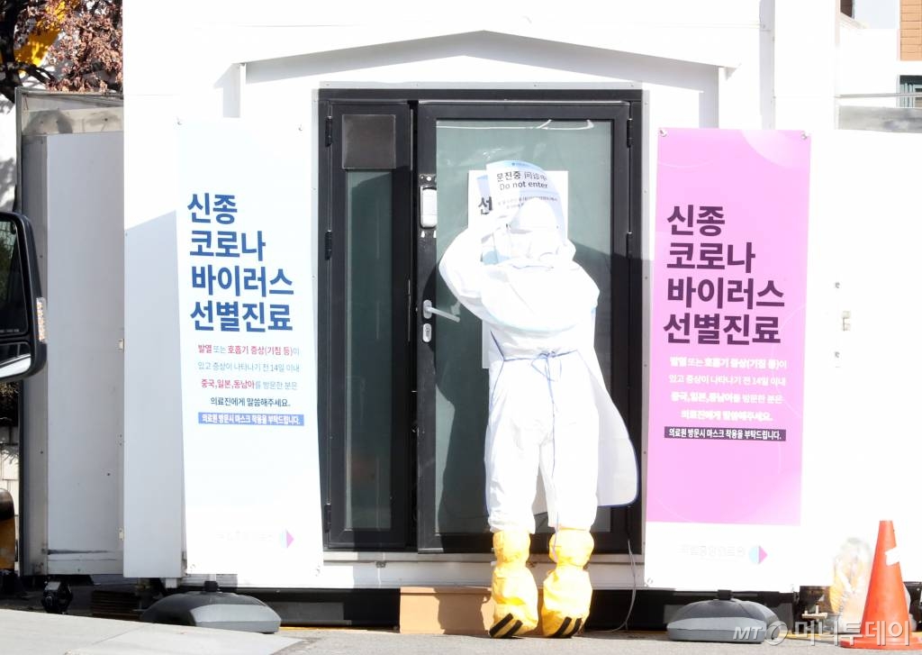 ![[서울=뉴시스] 전진환 기자 = 신종 코로나 바이러스 감염증(우한 폐렴) 국내 확진자가 28명으로 늘어난 11일 오전 서울 중구 국립중앙의료원 선별진료소 입구에 병원 관계자가 문진중이라는 안내문을 붙이고 있다. 2020.02.11. amin2@newsis.com](https://thumb.mt.co.kr/cdn-cgi/image/f=avif/21/2020/02/2020021611105933354_1.jpg)