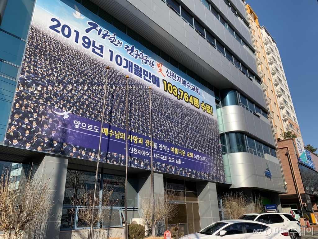 이날 오후 3시쯤 방문한 신천지예수교회 대구교회(다대오지성전)의 문은 굳게 닫혀있었다. 31번 환자가 다녀가 폐쇄조치된 곳이다. 건물 관리인은 "경찰이 누구도 들이면 안된다는 지시를 받았다"며 "18일 오전9시 30분부터 출입을 통제하고 있다"고 답했다.