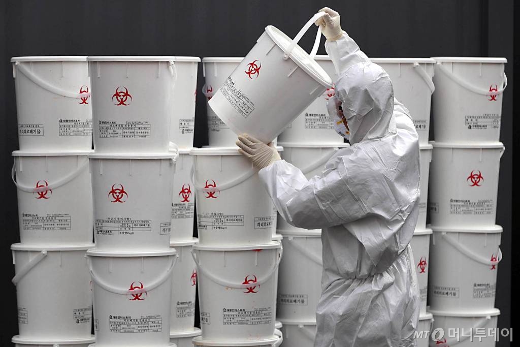 ![[대구=뉴시스] 이무열 기자 = 신종 코로나바이러스 감염증(코로나19) 확진자가 무더기로 급증하고 있는 24일 오후 대구 중구 계명대학교 대구동산병원에서 한 의료진이 코로나19 진료에 사용했던 방호복과 마스크 등이 담긴 의료용 폐기물을 옮기고 있다. 2020.02.24. lmy@newsis.com](https://thumb.mt.co.kr/cdn-cgi/image/f=avif/21/2020/02/2020022512405277685_1.jpg)