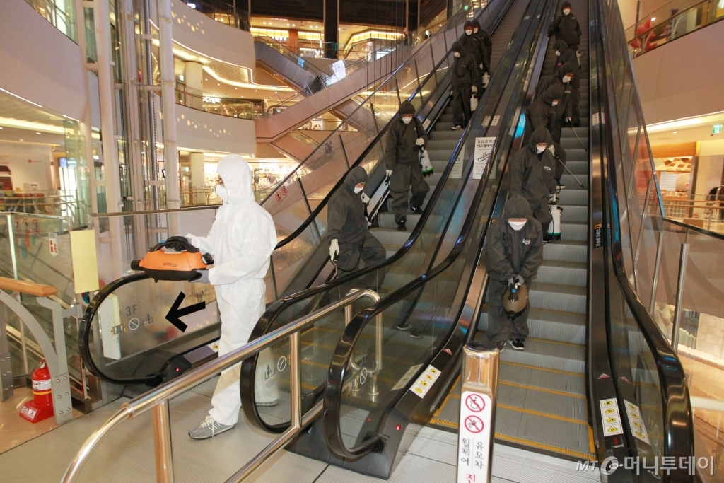 대형마트와 쇼핑몰들도 시설 소독 등 방역작업을 강화하고 있다. 롯데월드몰의 경우 사람들의 손이 많이 닿는 출입문과 에스컬레이터 손잡이, 엘리베이터 버튼 등을 주간 4회, 야간 2회 등 하루 6회 소독한다고 밝혔다. 약품을 살포하는 방역도 2~3일에 한 번씩 영업 종료 후 실시한다.