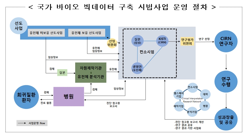 질병관리본부, 국가생명연구자원센터(KOBIC), 한국과학기술정보연구원(KISTI)는 수집된 임상정보와 유전체 데이터를 임상분석연구네트워크(CIRN)를 통해 산·학·연·병 연구자들에게 제공할 계획이다. 연구자들은 이를 다양한 연구와 희귀질환 환자 진단·치료 등에 활용한다.