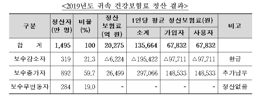 직장인 건보료 정산…319만명은 1인당 9만7000원 받아