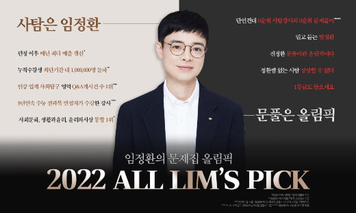 임정환 강사의 문제풀이 강좌 '올림픽(ALL LIM's PICK)'은 강사가 직접 엄선한 양질의 320개 문항으로 구성했다. 올해 6월 평가원 모의고사까지 반영한 최신 기출은 물론, 강사가 직접 출제한 자작 문제도 포함했다. 올림픽은 확실한 1등급을 지향하기 때문에, 강의에서 문제만 풀이하는 것이 아니라 반드시 알아야 할 핵심 개념과 만점을 위한 심화 내용까지 모두 정리한다. 특히 강의에서는 주요 문항을 집중적으로 풀이하고, 다루지 않은 문항은 자습을 통해 충분한 이해가 가능하도록 자세한 해설을 수록했다.