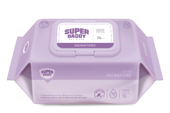 슈퍼대디의 대표 상품은 '시그니처 아기물티슈'를 비롯한 물티슈다. 얇은 평량의 원단부터 75gsm의 도톰한 평량의 원단까지 다양한 타입으로 제작돼 소비자의 사용 목적에 맞게 선택할 수 있음은 물론, 마지막 한 장까지 처음 그대로 촉촉하고 강한 보습감을 느낄 수 있다. 또 독자적인 기술력이 적용돼 줄줄이 딸려 나오지 않고 한 장씩 깔끔하게 잘 뽑혀 경제적인 측면에서도 우수하다.