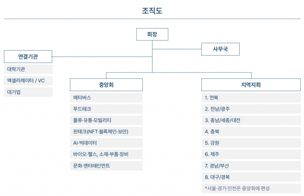 앞서 2016년 출범한 국내 1700여개 스타트업 단체인 코리아스타트업포럼이 핀테크, 프롭테크, 리걸테크 등 사업 분야별 규제혁신과 성장 지원에 초점을 맞췄다면, 전국스타트업연합회는 권역별 지역지회를 중심으로 지역 기반 스타트업 생태계를 구축하는데 힘을 쏟는다.