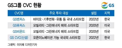 GS그룹은 국내 대기업 중에서도 CVC 설립과 투자에 가장 적극적인 행보를 보여왔다. 올해 초 국내 대기업 중에서는 최초로 지주회사 직속 CVC인 GS벤처스를 설립했다. GS벤처스는 바이오·에너지·기후변화 대응·유통·자원순환 등 5개 분야 관련 국내 투자를 담당한다. 금융감독원에 신기술사업금융전문회사 등록을 마치고 이르면 5월께부터 벤처펀드를 조성할 예정이다.