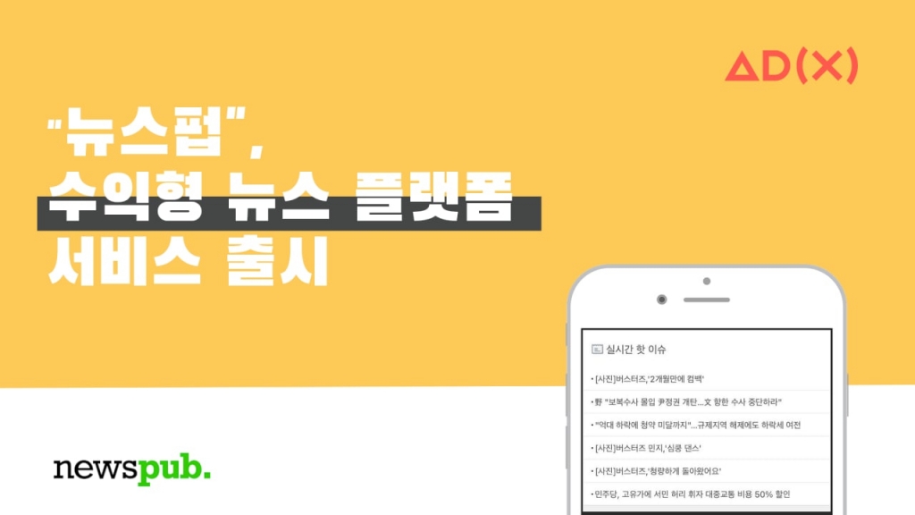 카카오게임즈에 인수된 스타트업 애드엑스가 리워드형 뉴스 큐레이팅 B2B(기업간거래) 서비스 '뉴스펍'을 출시한다고 12일 밝혔다.