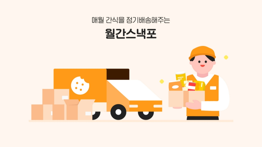 구독 상품에 따라 월 1~2회 나누어 배송된다. 스낵포에서 보유하고 있는 약 10만건의 직장인 큐레이션 데이터를 기반으로 인기가 검증된 간식으로만 구성된다. 매월 다른 간식으로 다양하게 즐길 수 있다.