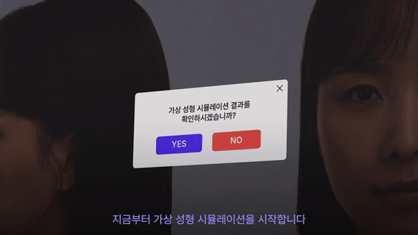 참가자들은 영상에서 성형이 성공했을 때와 부작용이 발생했을 때의 시뮬레이션 결과를 순차적으로 확인하게 된다. 성공했을 때 '연예인 같다'며 시뮬레이션 모습에 만족하던 소비자들은 얼마 뒤 화면에 띄워진 성형 부작용 모습을 보고 충격에 빠진다.