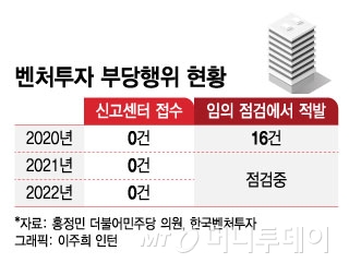 신고건수는 없지만 실제 부당행위가 근절된 것은 아니다. 신고센터가 설치된 2020년에만 한국벤처투자는 모태펀드 자펀드 투자계약서 점검에서 16건의 부당행위를 적발했다. 2015년부터 2020년까지 6년간 적발건수를 누적하면 126건에 달한다. 이마저도 전체 투자 건수가 아닌 임의 점검에서 드러난 결과다.