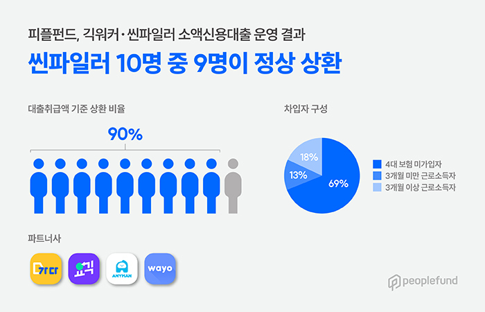 피플펀드 측은 이번 상환 결과를 통해 비근로소득자 중 대출상환의지 및 능력이 충분한 차입자가 다수 존재한다는 것을 입증했다고 설명했다. 그러면서 사회변화에 따라 급증하는 신규 직업군인 긱워커를 위한 대안금융모델 필요성에 대해서도 덧붙였다.