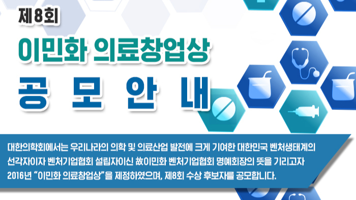벤처기업협회는 대한의학회와 손잡고'이민화 의료창업상' 신청을 받는다고 4일 밝혔다.