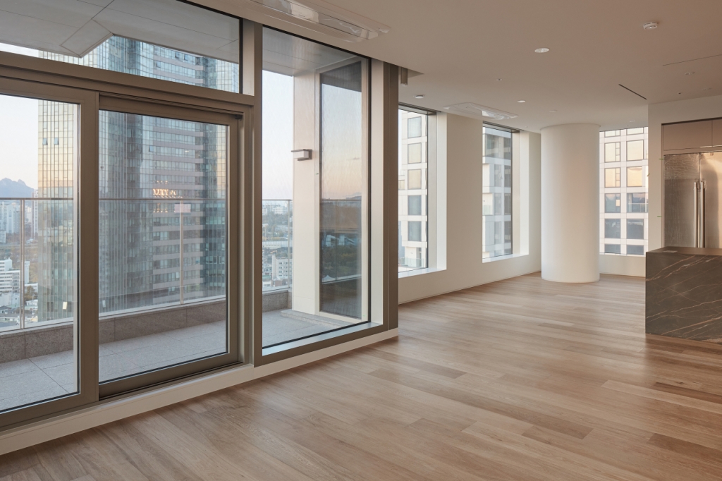 알루미늄 창호는 PVC 창호와 비교하기 어려울 정도로 세련됐다. 창틀이 얇아 조망도 해치지 않는다. 일반적인 알루미늄은 구릿빛이지만 창호는 코팅을 하기 때문에 디자인과 색상이 다채롭다.