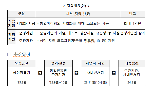 운영기업의 사내벤처팀 추천서는 9월 1일까지 창업진흥원 전자우편으로 접수를 받으며 이후 별도의 신청권한을 부여받은 사내벤처팀은 9월 8일까지 해당 누리집에서 신청하면 된다. 보다 자세한 사항은 K-Startup 창업지원포털 누리집에서 공고문을 확인하면 된다.