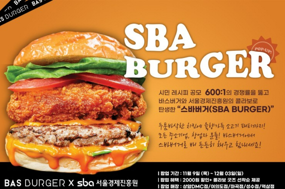 SBA는 국민에게 보다 가까이 다가가는 방안을 모색하던 중 '바스' 버거와 한글 이름 앞뒤 글자가 서로 똑같다는 아이디어에 착안했다. 이에 바스버거 운영사 테이스터스와 제휴, 지난달 버거 레시피를 공모했다.