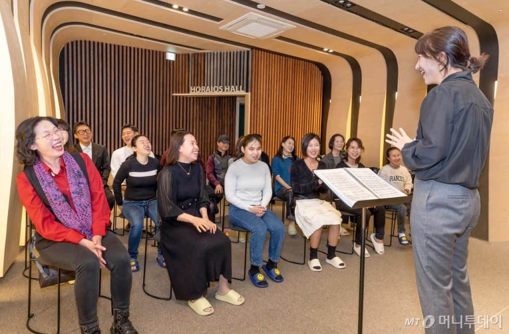 물빛소리 합창단은 코웨이가 운영한다. 단원들을 아예 직원으로 채용했다. 평일 오전에 출근해 합창하는 게 단원들의 직무다. 시각장애인이 가질 수 있는 직업이 너무 적어 그들을 위한 일자리 모델을 발굴해야겠다는 판단으로 합창단을 시작했다고 한다.