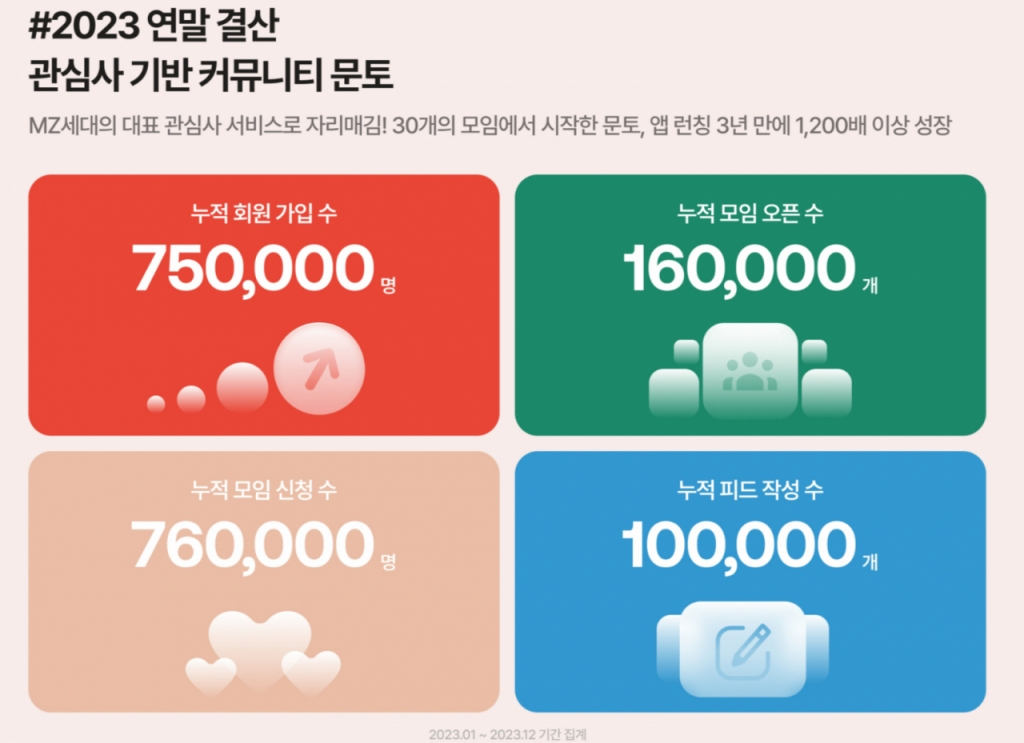 문토 관계자는 "내년에는 기존 관심사 커뮤니티를 더욱 강화하고 직접 기획한 모임, 멤버들의 수익 다각화를 위한 신규 기능을 개발할 것"이라며 "경계 없는 연결의 경험과 수익 창출 기회를 동시에 제공하는 서비스로 도약하겠다"고 말했다.