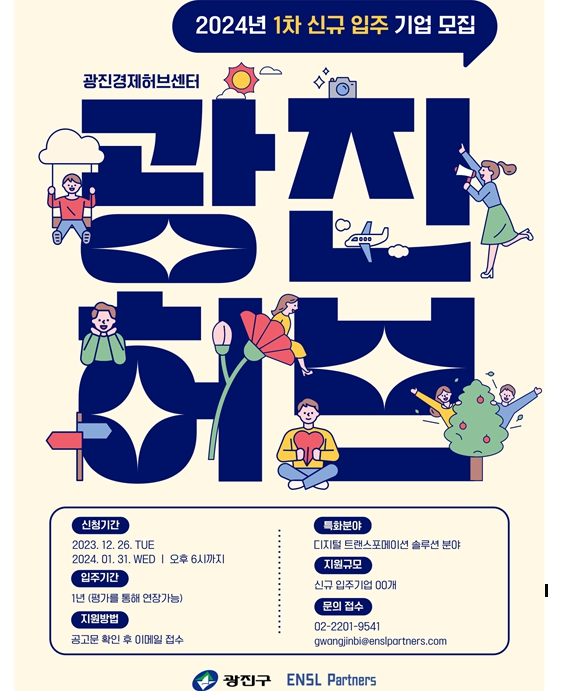 모집 공고 및 신청 양식을 엔슬파트너스 홈페이지에서 확인해 이메일로 접수하면 된다. 광진경제허브센터 기업지원실로도 문의할 수 있다.