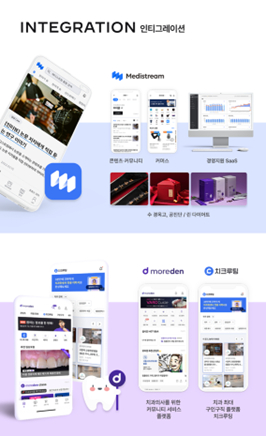 인티그레이션은 메디테크(메디컬+기술) 스타트업으로 불린다. 1986년생인 정희범 한의사가 2019년 한의사 커뮤니티 '메디스트림'을 시작했다. 동갑내기인 송언의 치과의사는 치과의사 플랫폼 '모어덴'(운영사 데니어)을 운영했다. 뜻이 맞았던 두 사람이 2021년 회사를 합치면서 지금의 포트폴리오를 갖췄다.