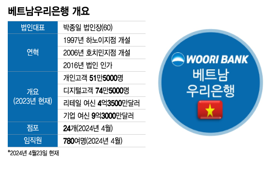 1997년 하노이에 지점을 열며 베트남에 첫 발을 딛은 우리은행은 2016년 지점이 아니라 현지법인으로 은행업을 할 수 있는 인가를 베트남 정부로부터 획득했다. 베트남에서 정식 법인인가를 받은 국내 은행은 우리은행을 포함, 단 두 곳이다. 우리은행은 현재 베트남 전역 24개 점포를 운영하며 개인 및 기업고객을 확장하고 있다.