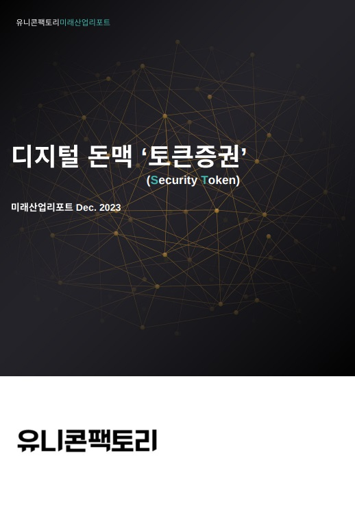 이번 유니콘팩토리 '미래산업리포트' 3호에서는 토큰증권(ST)에 대해 다뤘다. 최근 산업 트렌드와 함께 기술동향 그리고 △핀헤이븐 △서울거래비상장 △열매컴퍼니 등 주요 ST 분야 창업자들의 생생한 인터뷰도 담았다.미래산업리포트 풀버전은 모바일의 경우 아래 QR코드 스캔으로, PC의 경우 여기 링크(미래산업리포트-(3)토큰증권(ST)) 클릭 후 다운로드.