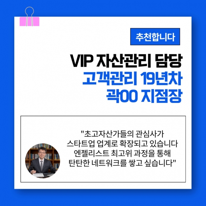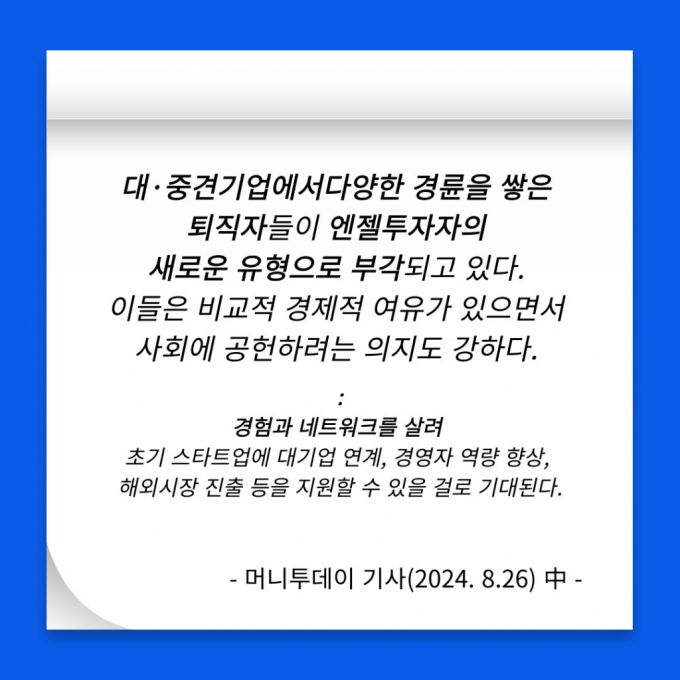 머니투데이 스타트업 전문 미디어 유니콘팩토리와 한국엔젤투자협회, 중앙대학교 창업경영대학원, 액셀러레이터이자 팁스(TIPS) 운용사인 엔슬파트너스가 엔젤투자자 양성을 위한 '엔젤리스트 최고위 과정'을 개설하고, 오는 22일까지 1기 원우를 모집합니다.
