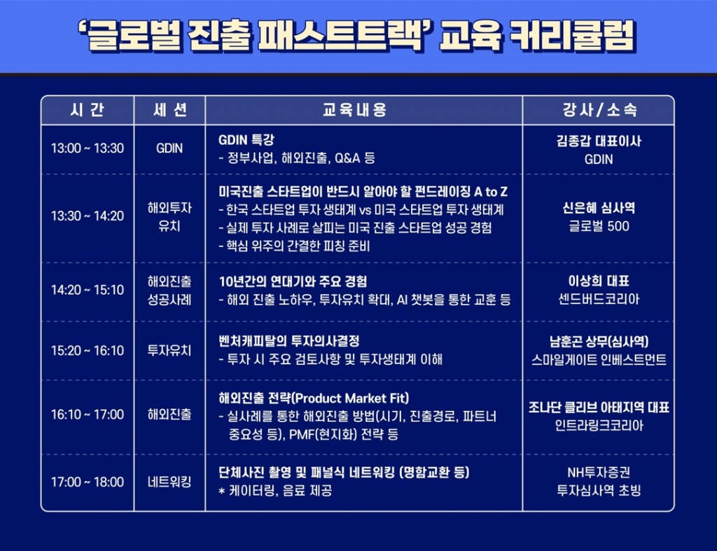 이번 교육 프로그램을 개발한 GDIN은 국내 기업의 해외 진출을 돕는 재단법인으로 지금까지 120개가 넘는 스타트업의 해외법인 설립을 지원하고 5조원에 달하는 투자를 이끌어낸 바 있다.