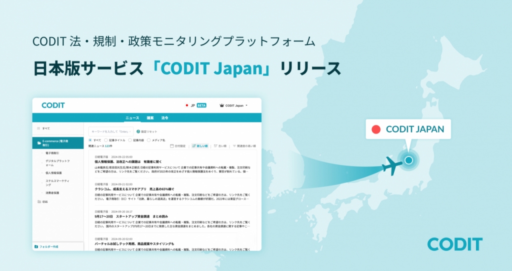 국내 유일의 법‧규제‧정책 모니터링 플랫폼 코딧(CODIT)은 '코딧 재팬'(CODIT Japan)을 출시했다고 24일 밝혔다.