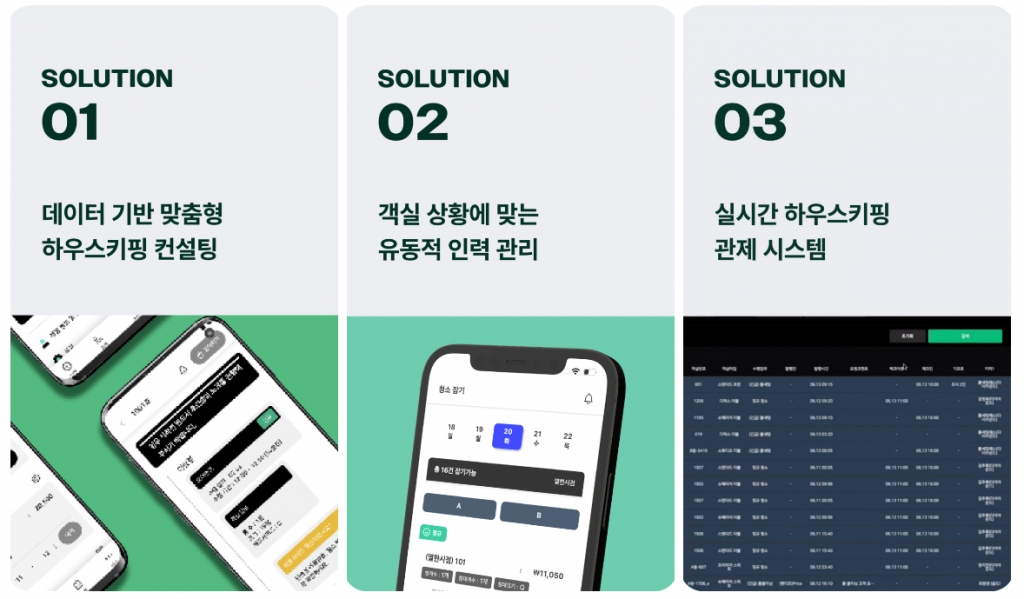 전국 500여명의 하우스키퍼 인재풀을 확보했으며 △데이터 기반 맞춤형 하우스키핑 컨설팅 △객실 상황에 맞는 유동적인 인력관리 △청소 방식의 표준화 △실시간 관제시스템 등이 강점이다.