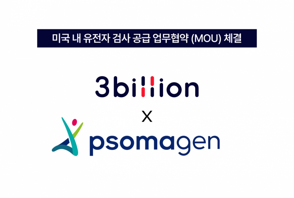 쓰리빌리언은 글로벌 유전체 기업인 소마젠과 함께 미국 의료시장을 대상으로 희귀질환 진단 유전자 검사 제공을 위한 업무협약(MOU)을 체결했다고 20일 밝혔다.
