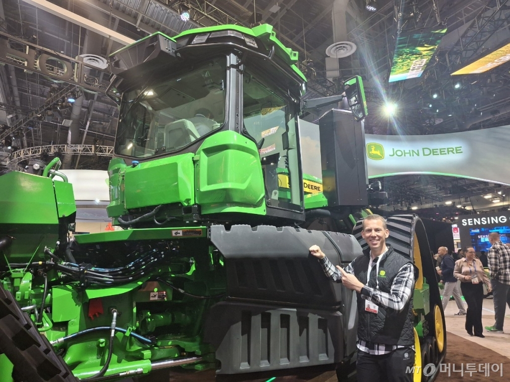 트랙터 바퀴가 미국인 남성보다 컸다. 지난 9일(현지시간) 라스베이거스의 CES 2025전시장에는 존디어 트랙터를 한번 타보려는 관람객들이 10m 남짓 줄을 서고 있었다. 한 남성이 "이거 탱크 아니야?"라 외쳤다. 트랙터가 한국 아파트의 2층 높이였다. 한국에서 볼 수 없는 크기의 트랙터였다. 한국 트랙터들은 커 봐야 200 마력대다. 존디어 트랙터는 830 마력이었다.