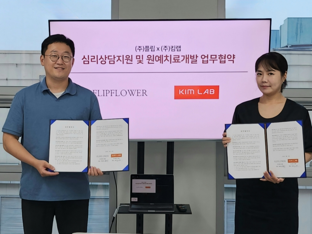 멘탈 헬스케어 기업 킴랩이 꽃 정기구독 서비스를 운영하는 플립과 청각장애인의 플로리스트 양성 및 일자리 창출을 위한 업무협약을 체결했다고 21일 밝혔다.