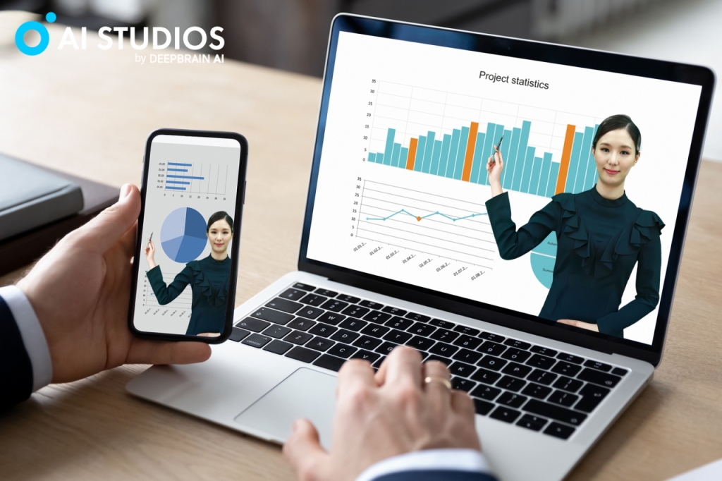AI 교수는 SaaS(서비스형 소프트웨어) 기반의 AI 영상 합성 플랫폼 'AI 스튜디오스'를 통해 쉽고 빠르게 제작할 수 있다. '텍스트 투 비디오' 기술이 탑재돼 스크립트, 명령어, 링크 주소, 문서 등만 업로드하면 음악, 배경, 영상 요소까지 자동으로 강의 콘텐츠가 제작된다. 복잡한 촬영 과정이나 제반 시설이 필요 없어 시간과 비용이 절감되는 것이 강점이다.