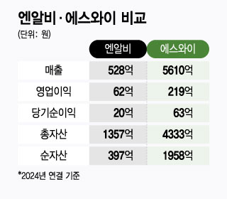 에스와이는 엔알비와 비교해 수익성은 낮지만 지난해 기준 매출이 10배 이상 많다. 순자산도 1958억원으로 엔알비(397억원)와 비교해 5배 수준이다. 단순 비교 시 엔알비가 에스와이보다 높은 기업가치를 인정받기는 쉽지 않을 것이라는 시각도 있다.