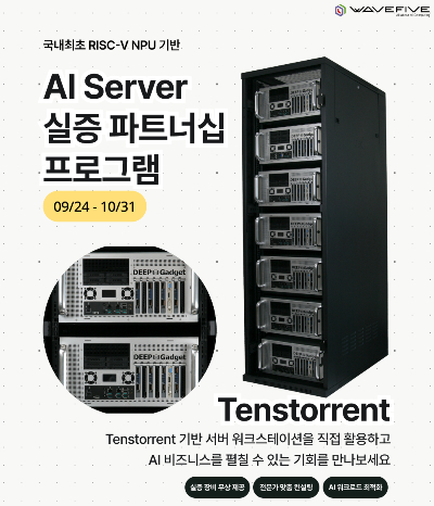 웨이브파이브는 최근 중소벤처기업부로부터 벤처기업 인증을 획득했다. 아울러 텐스토렌트, 매니코어소프트(ManycoreSoft), 컴팔(Compal) 등 글로벌 파트너사와 협력해 다양한 AI 시스템을 국내에 공급하고 있다.