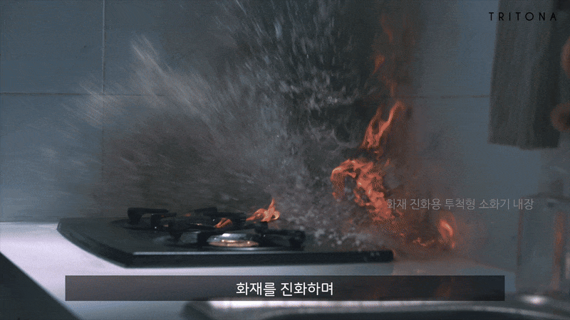 트리토나는 AI가 연동된 소화기이자 융복합 보안 시스템이다. 단순히 불을 끄는 기능을 넘어 화재 예방 및 범죄 모니터링까지 담당하는 제품이다. 겉보기에는 일상에서 흔히 볼 수 있는 텀블러와 비슷하며 모던한 디자인을 갖춘 것이 특징이다.