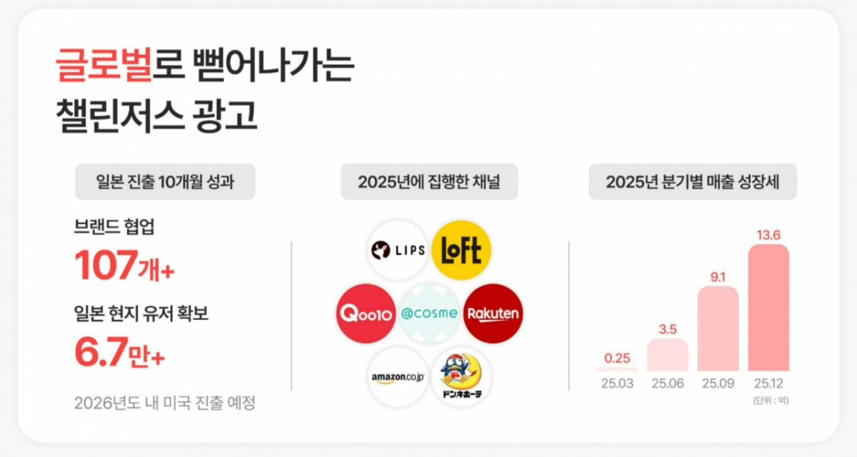 글로벌 시장으로도 사업을 확장했다. 올해 1월 일본 시장에 진출해 큐텐 재팬, 엣코스메, 립스, 라쿠텐 등 현지 커머스 플랫폼을 중심으로 다양한 브랜드 협업을 펼쳤다. 그 결과 일본 진출 10개월 만에 현지 이용자 6만7000명을 확보했으며, 누적 매출은 약 26억원을 기록했다.
