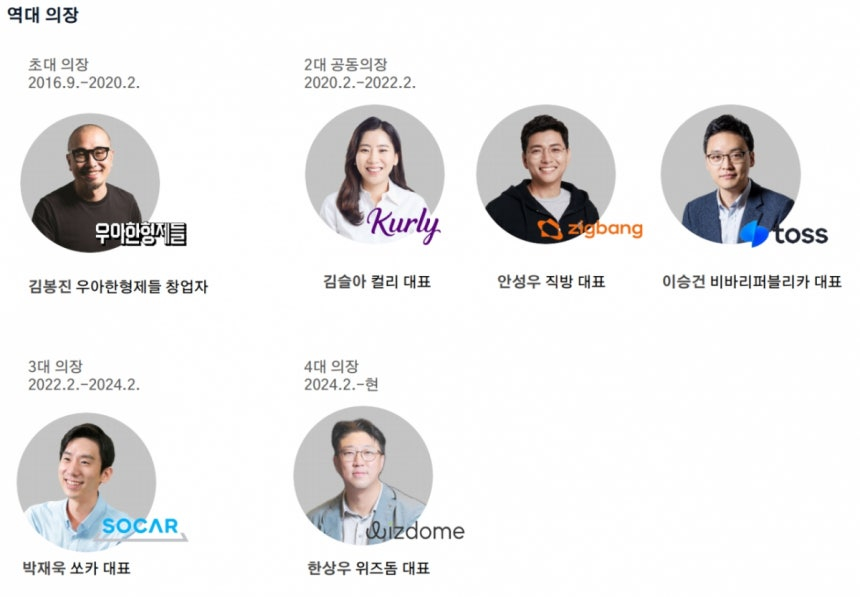 코스포의 1대 의장은 김봉진 우아한형제들(배달의민족) 의장, 2대는 김슬아 컬리 대표, 안성우 직방 대표, 이승건 비바리퍼블리카(토스) 대표가 공동으로 맡았으며 3대는 박재욱 쏘카(11,170원 ▼230 -2.02%) 대표가 역임했다. 김 대표는 이사회를 거쳐 다음달 5대 의장에 이름을 올릴 예정이다.