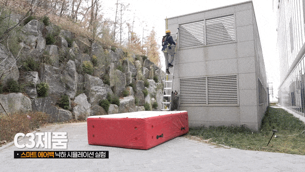 세이프웨어의 산업용 조끼 에어백 'C 시리즈'는 제품을 착용한 사람이 높은 곳에서 추락할 경우 조끼 내 압축돼 있던 기체가 한 순간에 방출되면서 에어백 쿠션을 부풀어 오르게 한다.